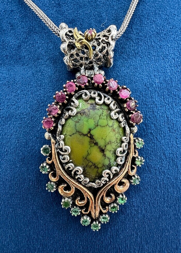 Zümrüt Yakut gümüşle uyumlu muhteşem bir kolye ucu