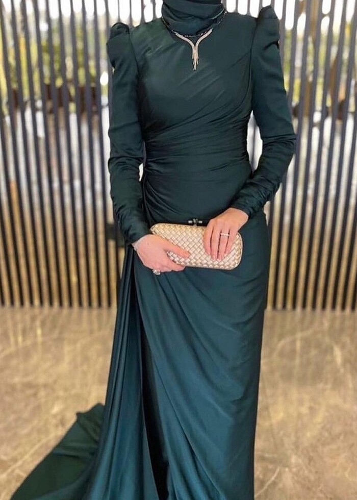 Zümrüt Yeşil Drape Model Kenzel Abiye