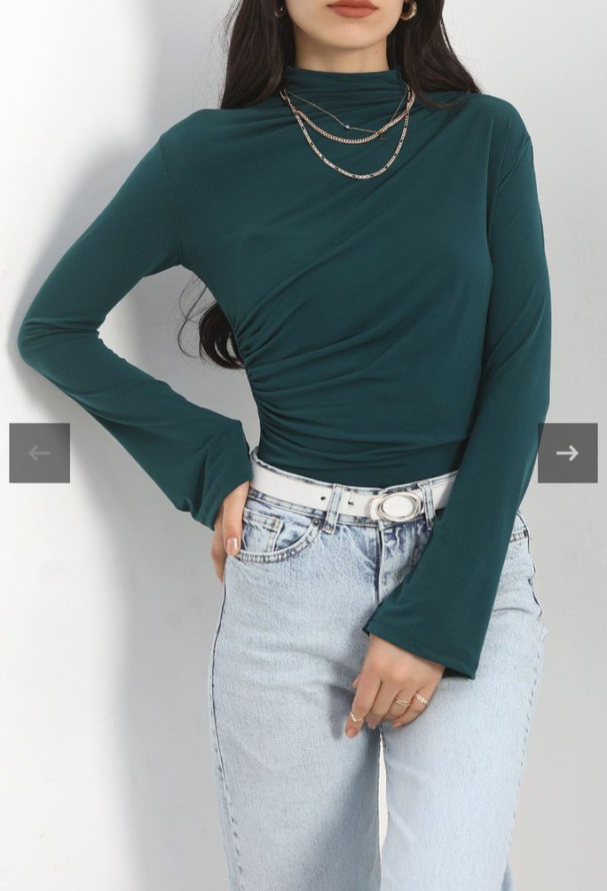 Zümrüt yeşil renkte, yüksek yakalı ve uzun kollu, desen içermeyen, rahat ve şık kadın bluz. Tertemiz. Ben fotoğraftaki gibi bir rengi olduğunu düşünerek almıştım ama rengi normal zümrüt yeşili. İhtiyaç fazlası olduğundan satıyorum.