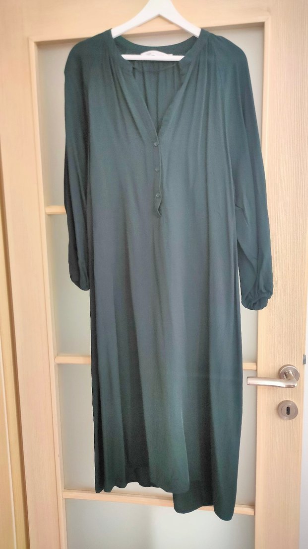 1 kere giyildi boyu kısa oldugu için satıyorum. boyu 125 cm bedeni 38 bedendir etikete göre dardır. rengi zümrüt yeşilidir fotoğraflarda tam rengi çıkmıyor