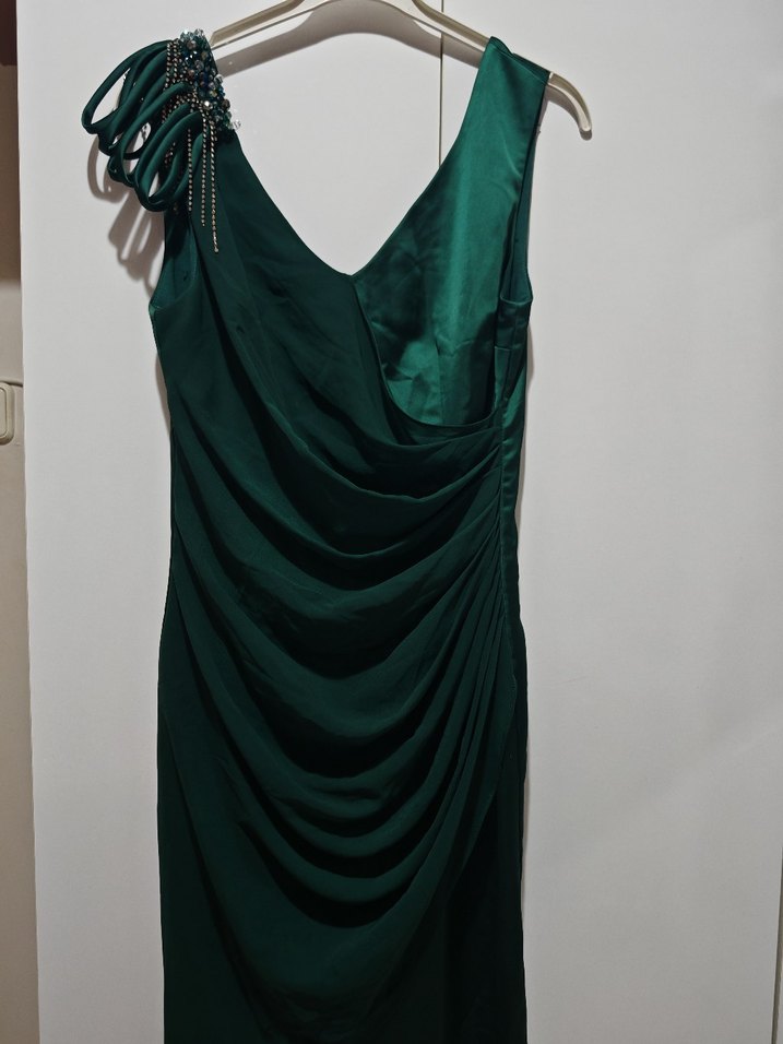 Zümrüt yeşili Parlak Drapeli Uzun Abiye Elbise