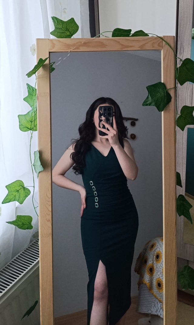 Zümrüt Yeşili V Yaka Midiboy Abiye Elbise