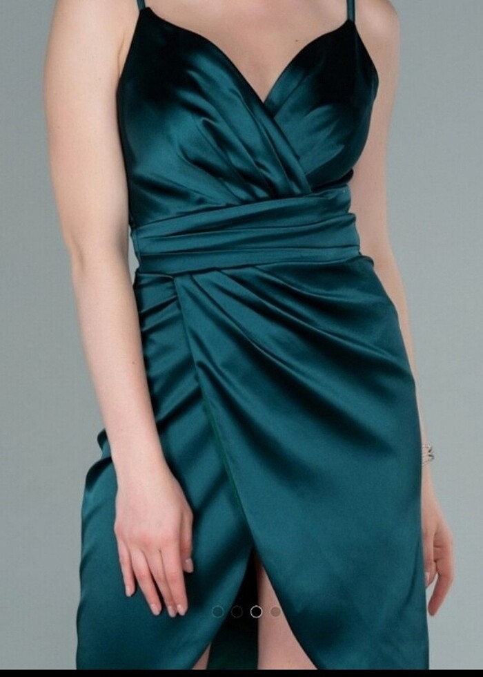 Zümrüt yeşili zarif elbise.Kusursuz. Özel bir yer için almıştım giyemedim.Sonra da dolapta kaldı.