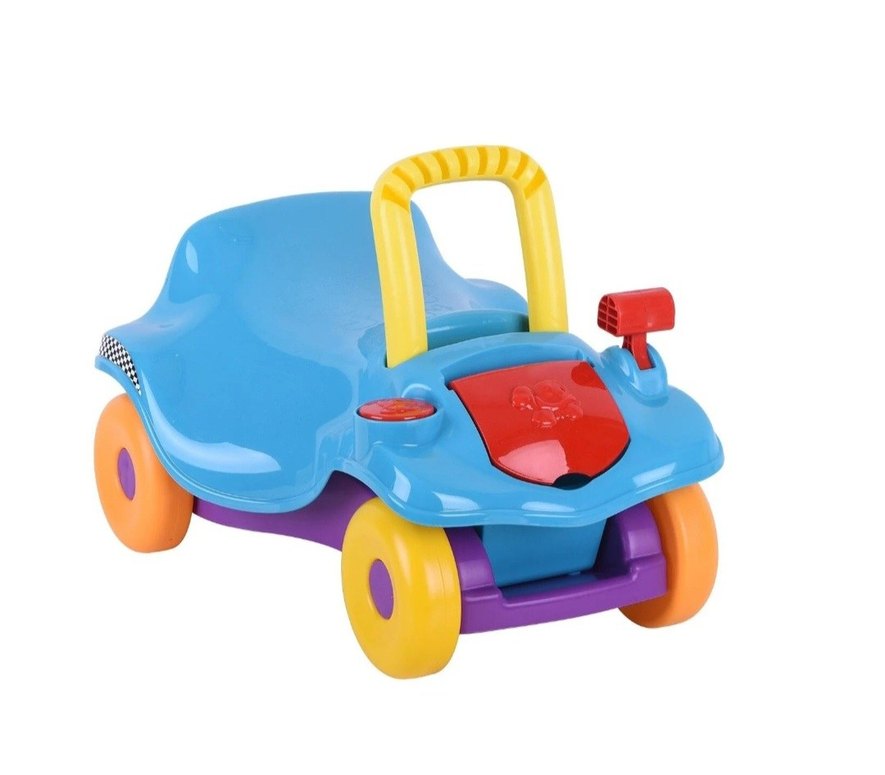 İlk Arabam İlk Adım, minikler için en güzel hediye ilk arabam ilk adım ile bebeğinizin ilk adımlarını birlikte heyecanla karşılayın. Bebeğiniz emekleme döneminden yürüme dönemine geçiş yapmasını kolaylaştırır. Ürün ilk adım pozisyonunda iken bebeğinizin dengede kalmasına ve ilk adımlarını atmasına yardımcı olur. ilk arabam ilk adım yürüme modunda iken ön kısmında bulunan renkli çarklar bebeğinizi adım atmaya teşvik edecektir. İlk adımlarını atan bebeğinizin dengesini sağlamasına, hareketlerini koordine etmesine ve ince kaba motor gelişimine katkı sağlar. Yürümeye başlayan bebeğiniz ilk arabam ilk adım’ın keyfini araba modunda çıkartmaya devam edecekler. Bebeğinizin bacakları ile zeminden destek alarak hareket edecek aynı zamanda Bacak kaslarının güçlenmesi de sağlanmış oluyoSarı tutma saplı, turuncu tekerlekli renkli mavi bebek yürüteci, erken yürüme desteği için.