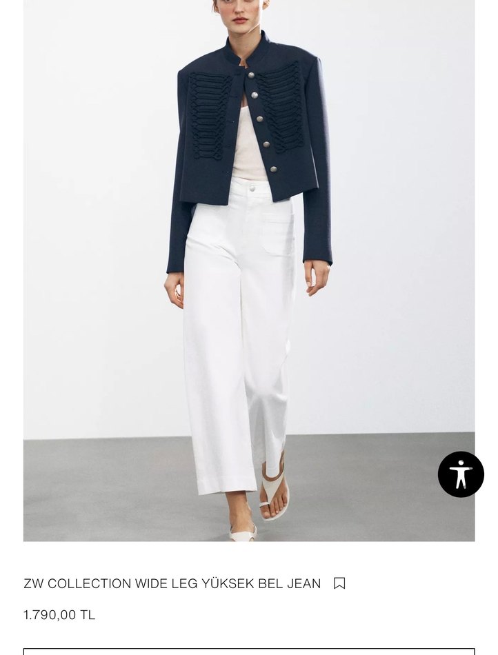 ZW Collection yüksek bel, geniş paça, beyaz denim kumaştan yapılmış rahat ve şık günlük kullanıma uygun pantolon.
