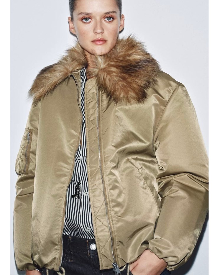 Bej renkli, parlak sentetik kumaştan yapılmış, bol kesim, yakalı ve uzun kollu midi ceket. Yaka kısmında kürk detayı bulunur, rahat ve şık bir sokak stili ürünü. Tertemiz kullanılmadı