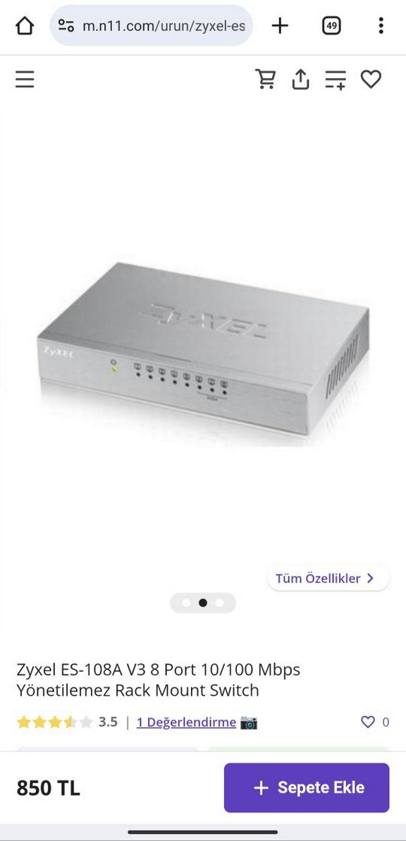 Zyxel ES-108A, 8 port 10/100 Mbps hızında yönetilemez rack mount switch olarak güvenilir ağ bağlantısı sağlar. ⚙️