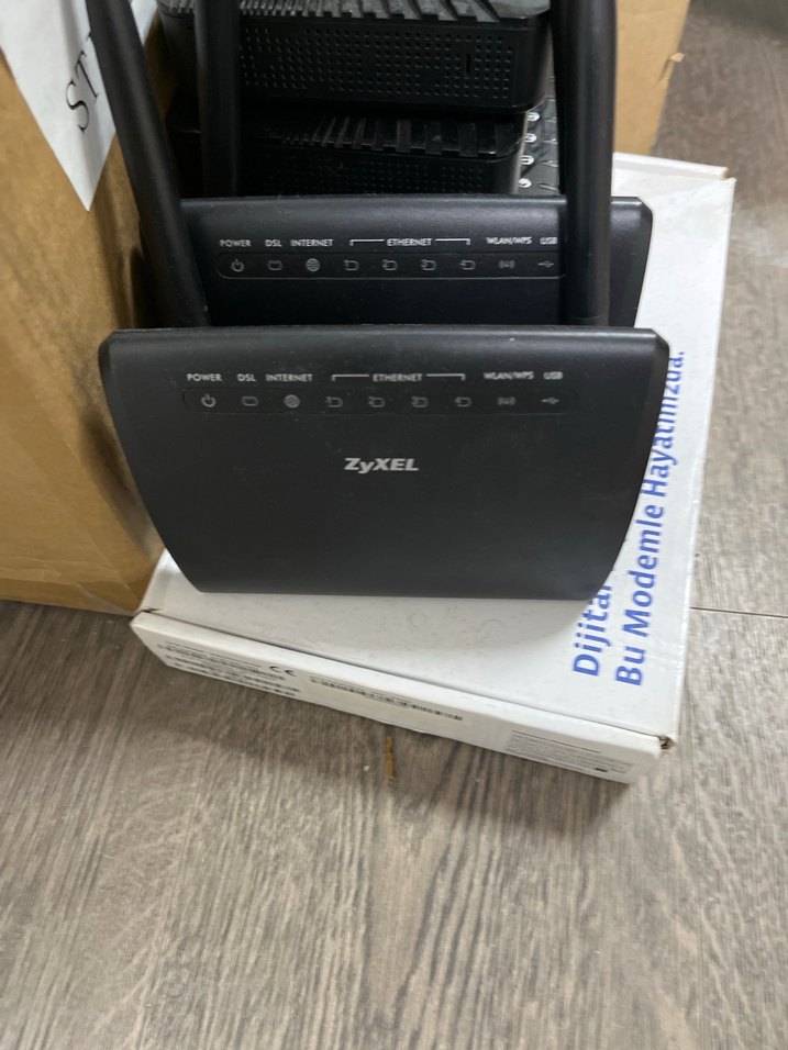 ZyXEL iade garantili test edilmiş adet fiyatı siyah kablosuz modem router, güç, DSL, internet, Ethernet ve USB bağlantılarını gösteren ışıklarla donatılmıştır. Kablosuz ağ desteği sunar.